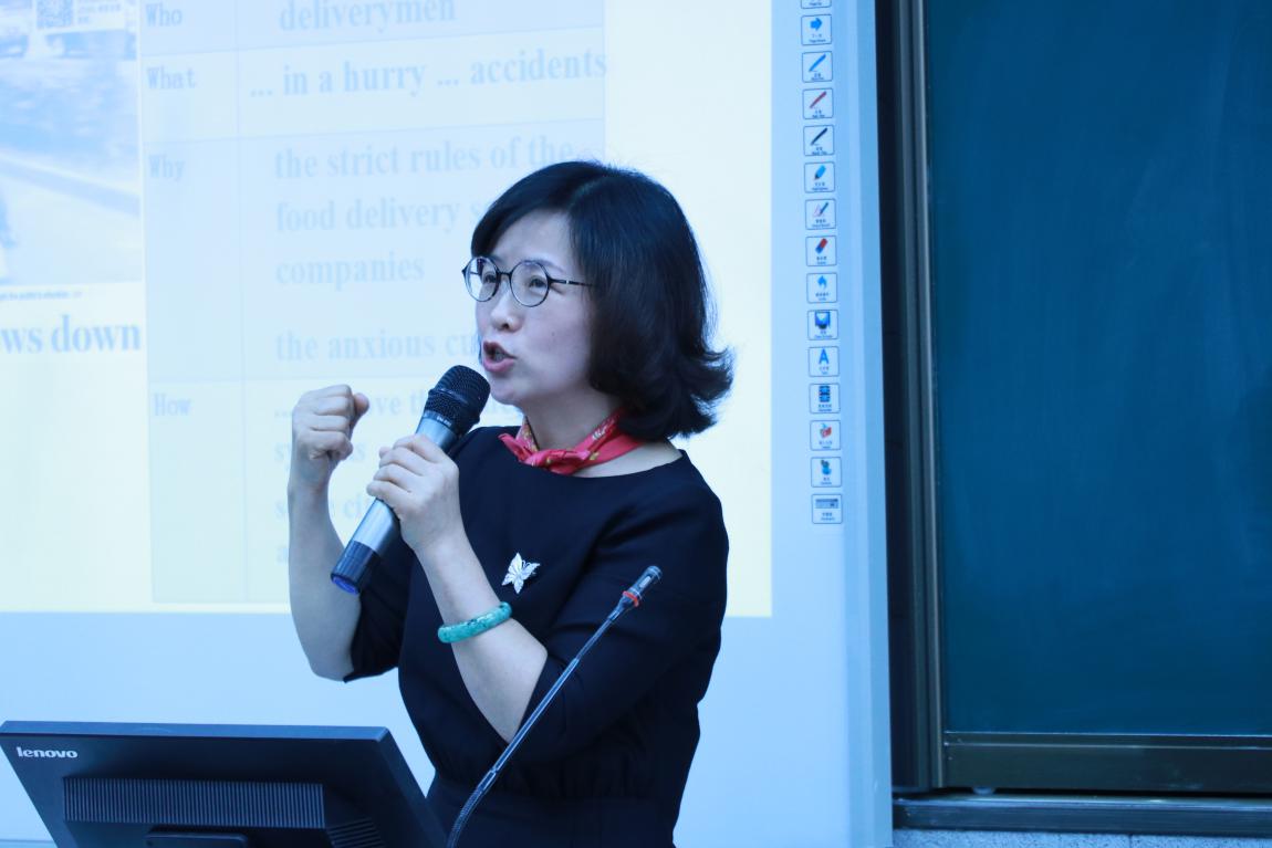 最后,李爱云老师还针对“报刊阅读与英语学习”做了题为《核心素养背景下的英文报刊阅读教学》的精彩讲座。讲座中她分享了我校英语报刊阅读教学的做法,以实例为切入口结合前沿的教育理论和方法,向与会老师传递了核心素养的实质以及在课堂落实的具体操作办法。她的演讲引起了与会老师的高度共鸣,激发了大家的教科研热情和通过各种渠道培养学生英语核心素养的信心。