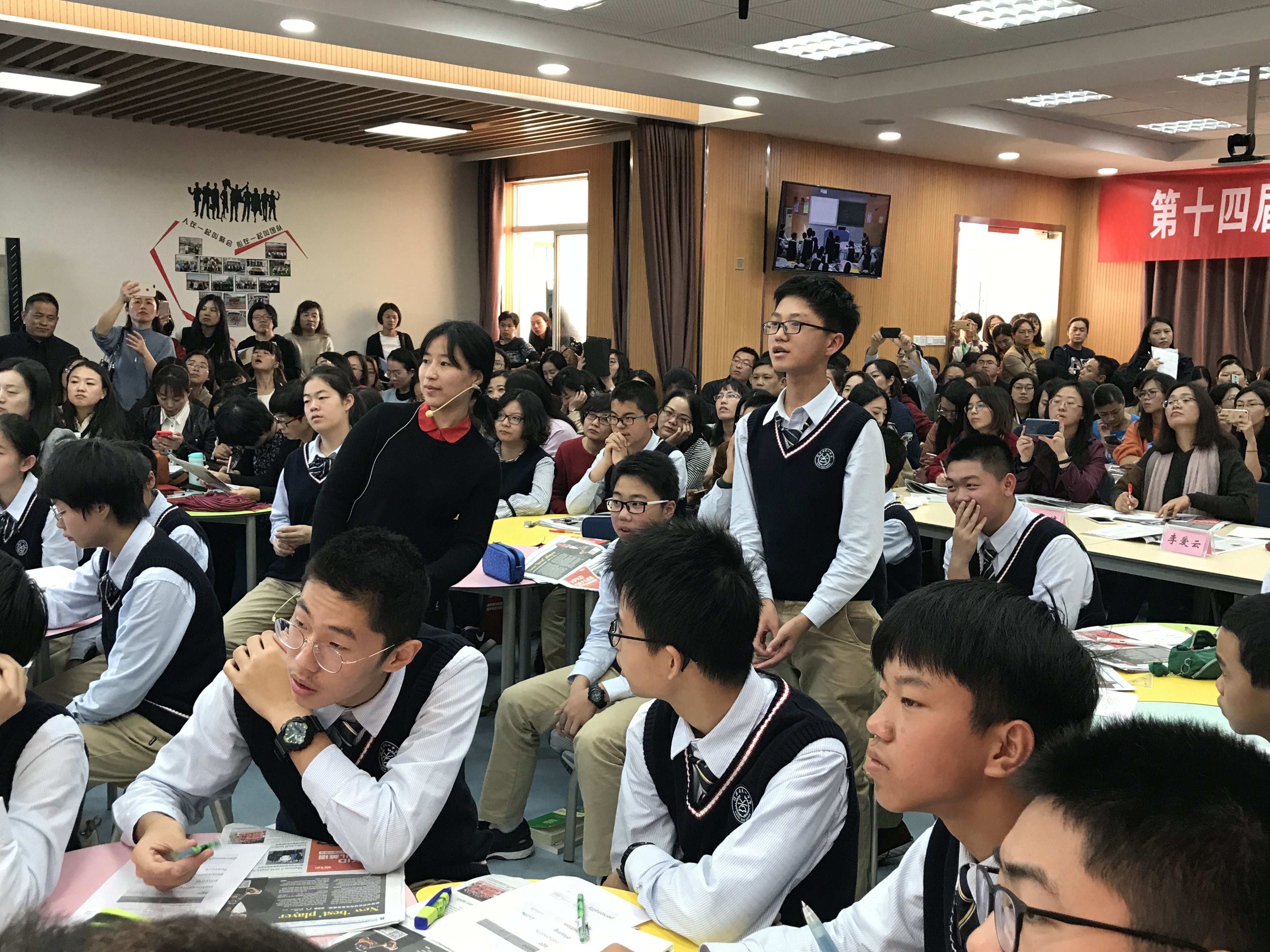 在初中英语分会场,天一中学的潘怡婷老师和纪敏老师分别展示了一节初中英语报刊阅读课的同课异构。潘老师带领学生就文本展开了充分的研究和讨论,她在课堂上注意培养学生的阅读技巧与学习能力,并把“立德树人”穿插在教学的每一个环节,师生配合默契,课堂教学目标达成度高。纪敏老师则另辟蹊径,她的课堂以caption为线索、change为主题,一明一暗两条主线贯穿始终。她在课堂上始终关注学生的反应和表现,并适时调整自己的教学预设。针对学生的回答,纪老师不断追问,激发学生的高阶思维,碰撞出许多思维的火花,让课堂变得灵动而有意义。天一中学的学生在课堂上踊跃参与、积极思考,和老师产生了认知和思想以及情感上的共鸣。最后,纪敏老师获得本次课堂展示一等奖,她的课堂充分展示了南外鲜明的英语教学特色和老师自身优秀的综合素养。