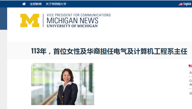 据密西根大学官方报道:南外91届校友刘鸣雁教授成为密西根大学电气及计算机工程系系主任,这是该系成立113年以来的首位女性及华裔系主任。