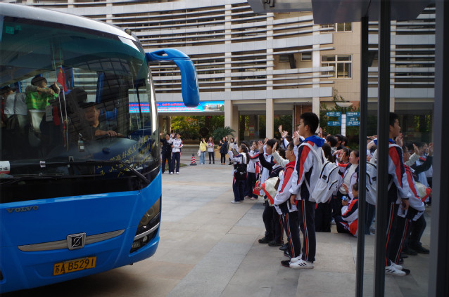 欢乐的时光总是那么短暂,午饭过后,日本同学匆匆登上了返程的大巴。告别时,大家挥舞的双手久久不愿放下。