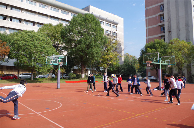 交流结束后,最激动人心的项目——躲避球在操场上如期举行。大家在操场上享受着冬日难得的日光,笑着玩着。