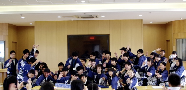 互换纪念品后,日本学生集体表演了日本传统舞蹈拉网小调,并赠送了演出服装,把全场气氛烘托到最高潮。