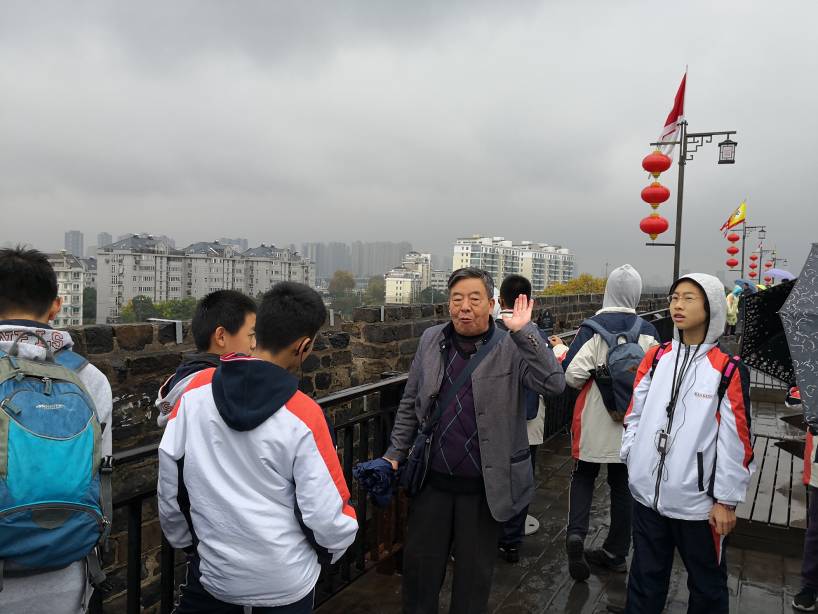 本次活动是徒步明城墙,路线是中华门−武定门−东水关。特邀王许林教授全程讲解了沿途城墙典故历史及变迁发展。上到中华门城堡城头,教授指向大报恩寺的方向:“这段城墙其实是一条分界线,你看,这边代表南京的历史,有着深厚的文化底蕴,处处都是名胜古迹,大报恩寺、雨花塔、方孝孺墓、牛首山佛教圣地等等。”教授 又转过头来:“这另一边,是现在的南京,有着现代化的高楼大厦,体现了南京的经济繁荣。”