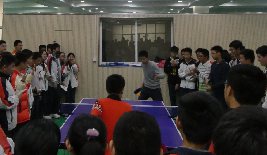 11月27日-30日,初二年级的同学们为增进友谊、锻炼身体,举行了一场别开生面的年级乒乓球赛。室外雾气缭绕,朦胧一片;馆内球拍击球的“乒乒乓乓”声、同学们的欢呼声此起彼伏,场面扣人心弦。