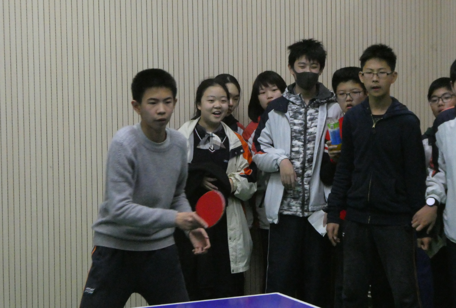 搓球、推挡、轻挑……每位同学都火力全开,使出自己的“必杀技”。即使面对对手的大力扣杀,选手们也毫不畏惧,使出浑身解数去救球;遇到罕见的擦边球,失利的一方也并不气馁,把注意力集中在下一个球的争夺上。有好几局比赛,比分已经来到了9:5的大差,落后的一方也不轻易言败,而是在同班同学的助威声、呐喊声中,奋勇搏杀,扳平甚至反超了比分,为班级拿下关键的一分;也有的虽经顽强抵抗,没能挽回败局,但是依然收获了观战者们如雷的掌声……是啊,比起结果,同学们拼搏的精神和挥洒的汗水才更为夺目!