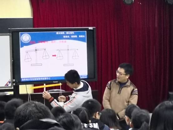 接着,区教研员胡少希老师为玄武区的老师们展示了一节《质量》的示范课。从生活实际出发,一步步启发学生建立质量的概念和度量单位,让学生自主逐步设计并完善测量质量的实验仪器,并继续带领学生进行实验探究。