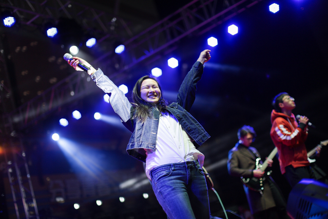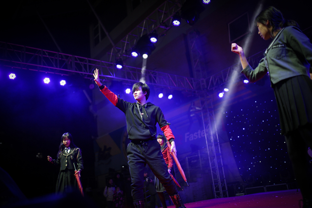 每半小时举行一次的兔子舞也深受欢迎,从舞台的右边排起了长长的队伍。同学们一个搭着一个的肩,欢快地伴随着音乐向前跃动直到舞台边缘。