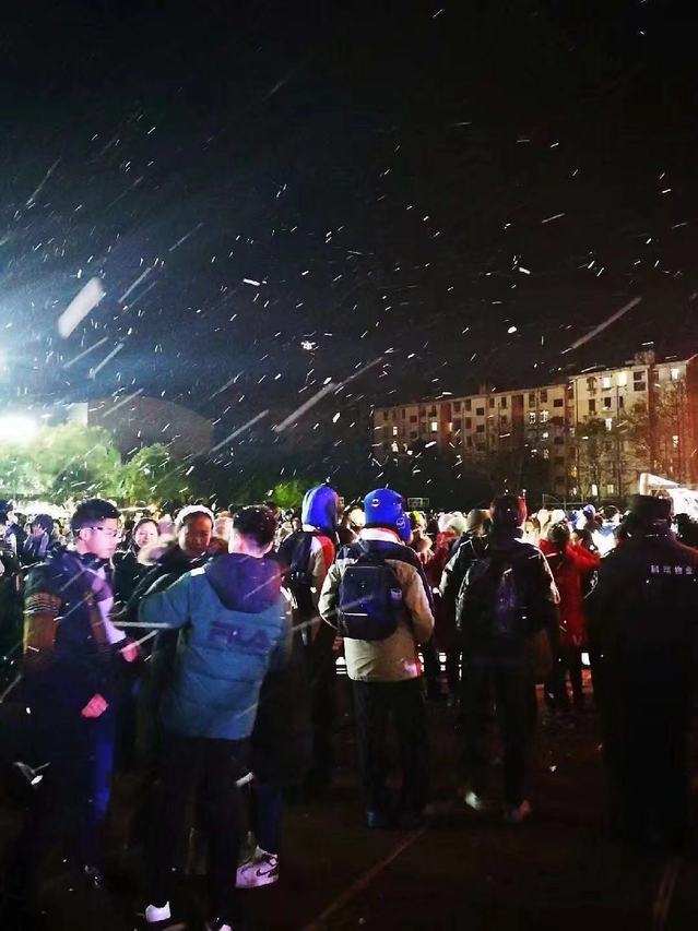 不同于去年的是,今年没有了篝火。为了让学生体验冬天新年的快乐,学校特意为大家下了场雪。