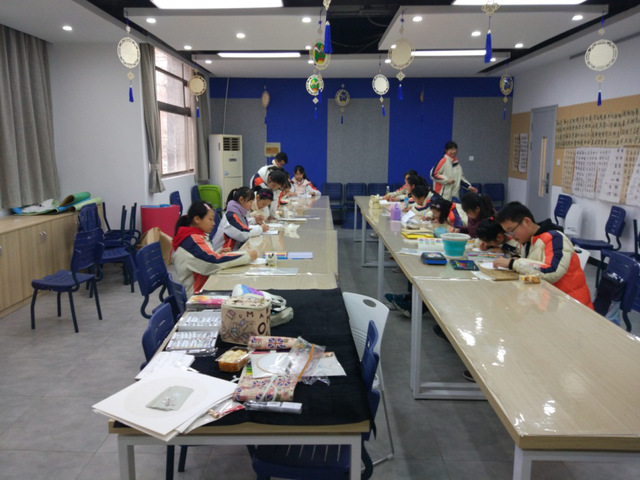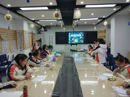 渐入佳境,这是一场人与植物的对话,每个同学都用自己的情感表达着他们对自然的热爱。很快许多漂亮、包含情感的团扇就完成了。