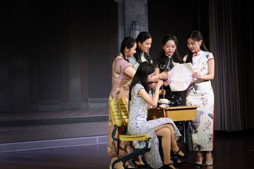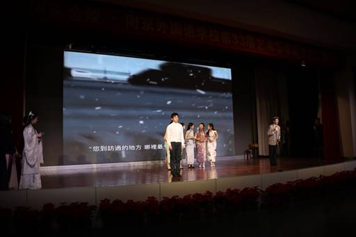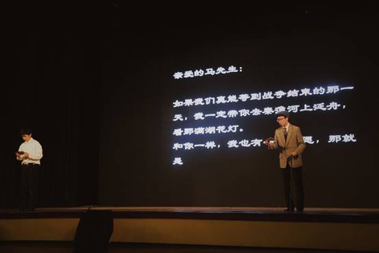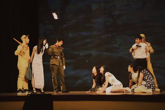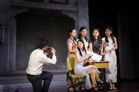 可能是咱们班人数不多的原因,几乎每位同学都能有机会参与到了其中。在每一次的排练与协调中我都能感受到每位同学都在积极地尽自己所能去渲染整部剧的舞台效果。当最后一次全校汇演结束,台下爆发出雷鸣般的掌声时,我从声控台一路狂奔到大家身边,站在聚光灯下带领着身后一起努力了这么久的同学们一起鞠躬时,我心中涌上的感动令我红了眼眶。