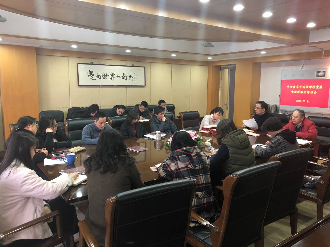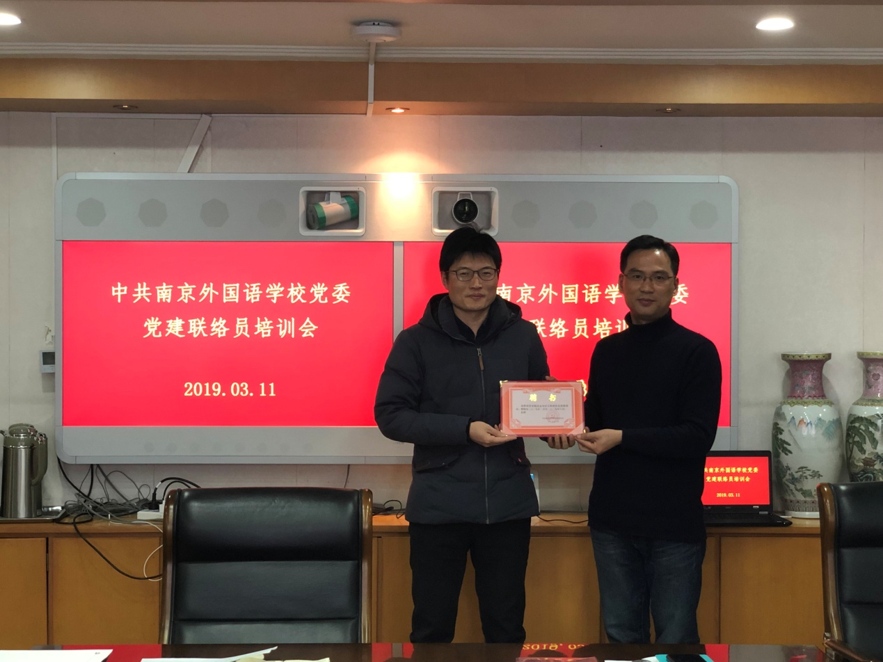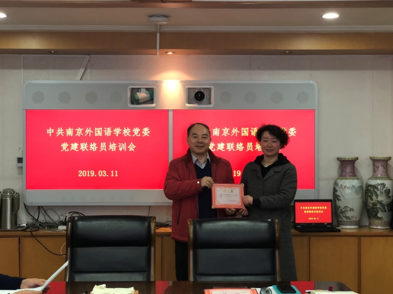 会上,刘书记、邹校长为各党支部、各党小组党建联络员颁发聘书,并带领大家认真学习了《中国共产党南京外国语学校委员会党建联络员工作职责》。