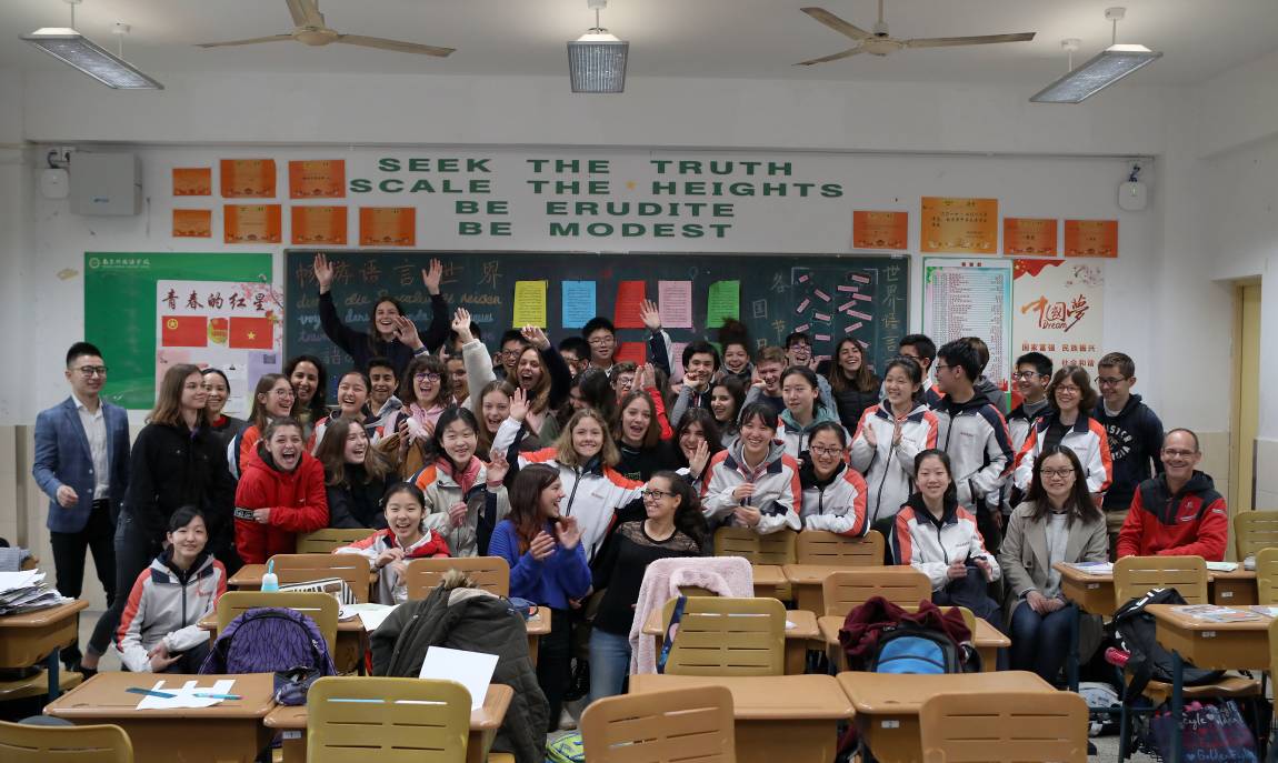 古语云:有朋自远方来,不亦乐乎。4月5日至10日,与我校有着七年情谊的老朋友—法国波尔多阿兰·富尼耶中学的28位学生和3位老师来到我校进行友好访问。我校老师,初二、高一、高二法语学生及学生家庭热情友好地接待了远道而来的朋友们。在为期6天的交流互动中,法国学生全方位地体验了我校学习生活,参加了各项文体活动,融入我校接待学生家庭,体验南京生活,探索金陵之美,感受中文的魅力和中国文化的博大精深。我校学生与法方学生建立了深厚的友谊,两校的情谊也更加深厚,如南京的春天般萌发出了新意。