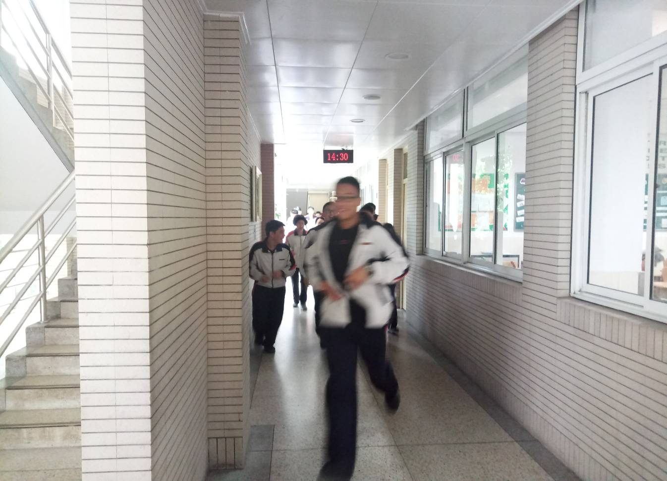 下午2:30第一遍警铃响起,按照疏散预案要求,同学们没有急于冲出教室,而是找地方躲避,保护好身体的重要部位。当第二遍警铃响起时,同学们开始有序从教学楼内疏散。