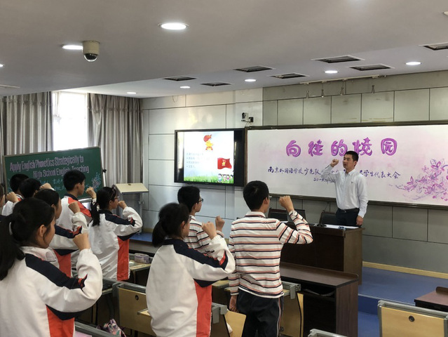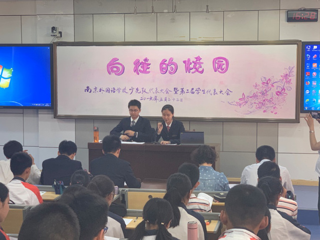 2019年5月22日下午3:30分在E二楼阶梯教室隆重举行了南京外国语学校少先队员代表大会,在庄严的队歌声中,少代会拉开帷幕。