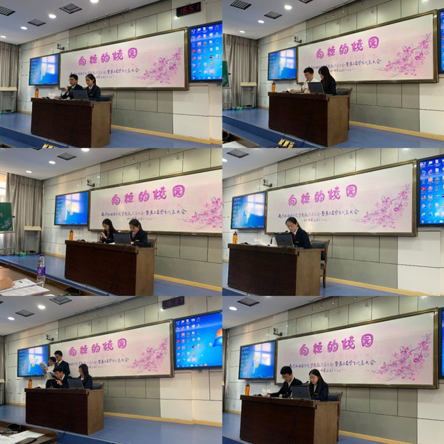 然后,本届学生代表大会主席团常务主席学生会主席韩书缘、肖潇,向大家介绍了本次大会概况,并进行了提案工作汇报。