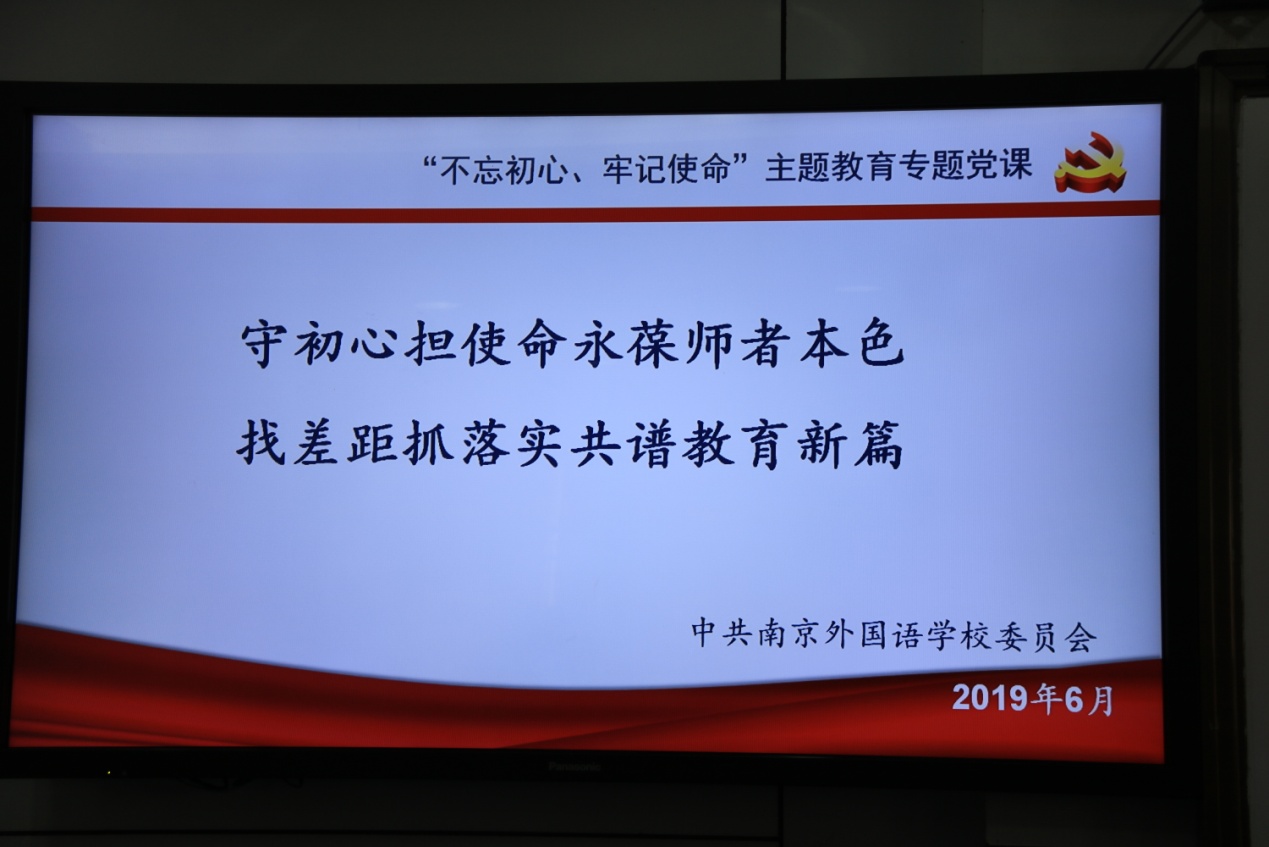 6月26日,中国共产党南京外国语学校委员会举行“不忘初心、牢记使命”主题党日活动。活动由纪委书记吕燕同志主持,全校党员同志出席。