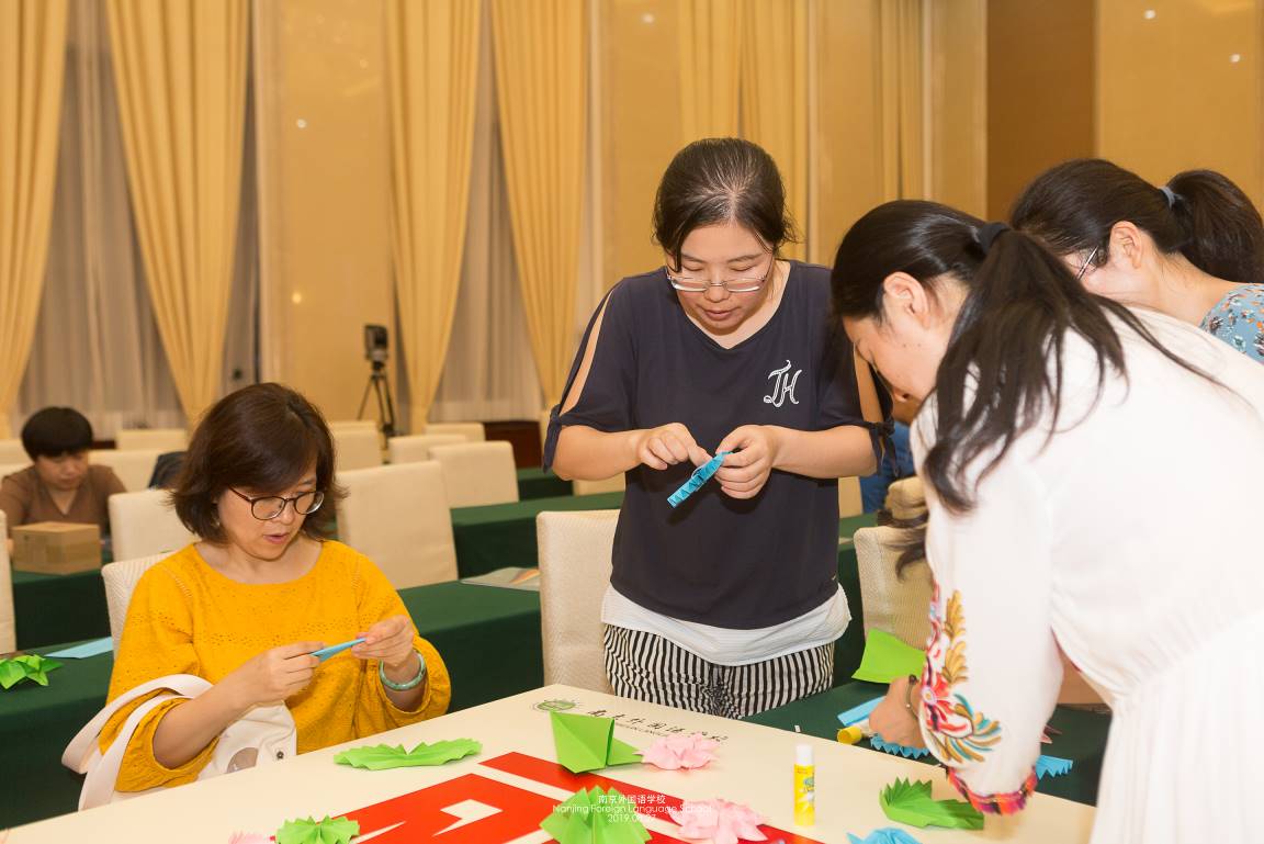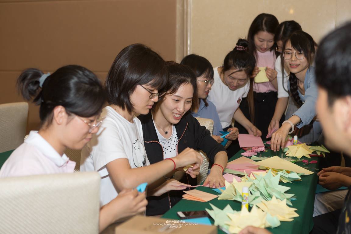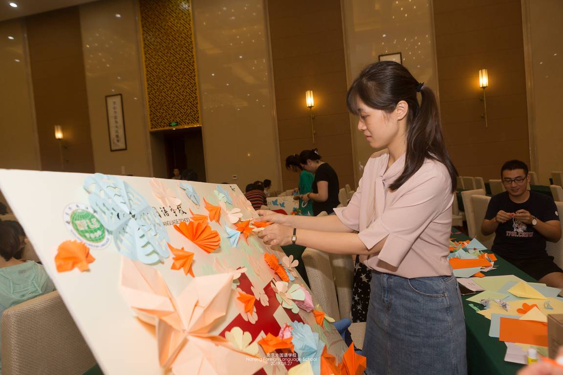 美丽中国70年,各位老师用折纸花朵为美丽祖国做装饰。各工会组折花朵、摆造型,装饰宣传画板;宣传画板上花朵数量多、造型优美的小组获胜。在有限的时间里,大家紧锣密鼓地设计制作,各小组创意十足,作品美不胜收。
