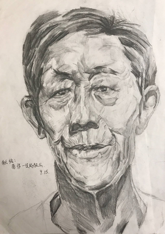 (四)留心观察,感受付出。一幅幅肖像画作,让人看到了我们年青一代对长辈的敬爱和对美好生活的热爱。
