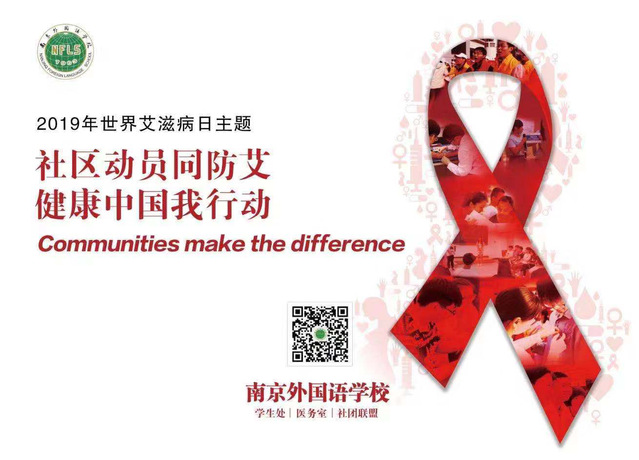 2019年12月1日是第32个世界艾滋病日,南京外国语学校学生处、医务室以及社团联盟在世界艾滋病日到来之际,开展了一系列活动,旨在提高学生对艾滋病防治等相关知识的认知,让学生知艾防艾,保护好自己的同时也能将防艾知识更好的传播给更多的人。
