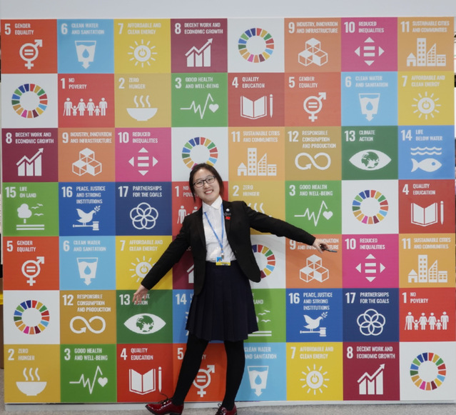 图为李颖在会场的SDG(联合国可持续发展目标)场馆口