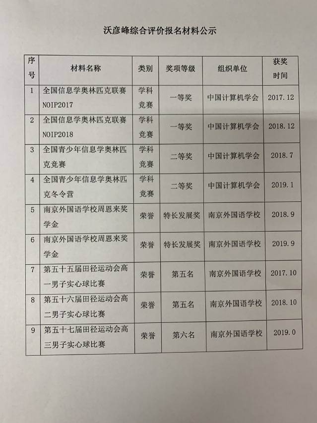 3.经本人申请,现将综合评价获奖情况申报材料公示如下: