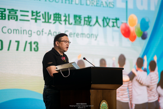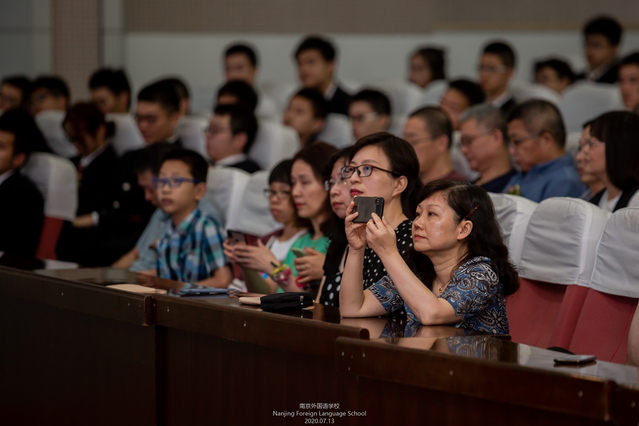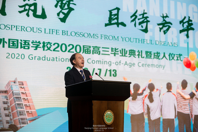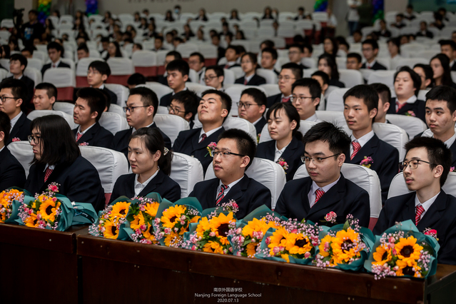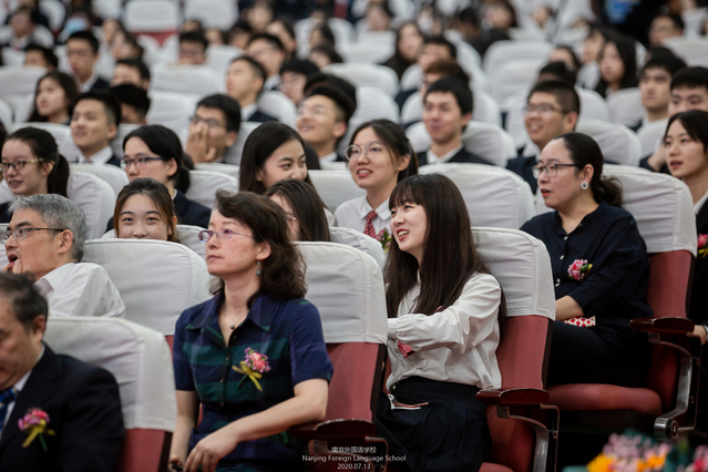 7月13日,南京外国语学校2020届学生毕业典礼暨成人仪式在校报告厅举行。校领导、家长代表、高三全体老师共同见证这一时刻。