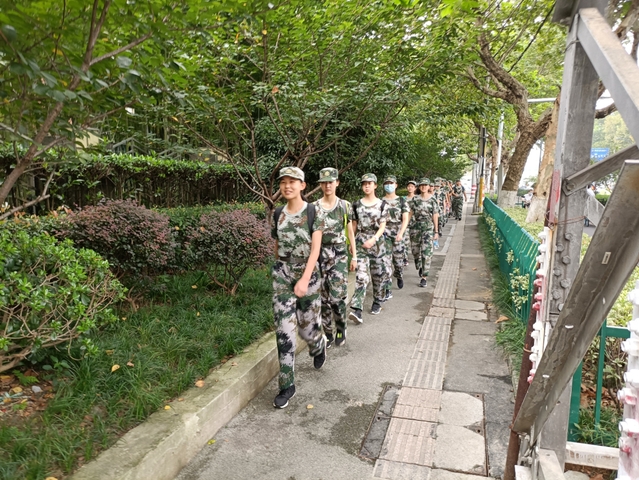 上午八点零二分,全体同学在学校门厅集合完毕。身着迷彩服,头戴迷彩帽,一个个神采飞扬,精神抖擞。在“出发”的口令响起后,我们整齐的走出校门,开始为期半天的活动。雨后的天气总是最好的,一团团湿润却不粘腻的空气流动着,微风拂过,是朦胧,是新鲜,一切都刚刚好。我们列成两队向前缓步走着,有同学细声交谈,有同学放声歌唱,一派岁月静好的模样。有一段经过玄武湖畔的路,在公园晨跑的叔叔阿姨大爷大娘看见我们,一个个都溢出藏不住的微笑,那股少年朝气是否带给他们温暖了呢?