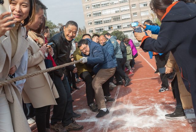 在连日的阴雨之后,我们终于迎来了一个阳光明媚的冬日。12月4日中午,南外教职工冬季拔河比赛在学校操场举行。