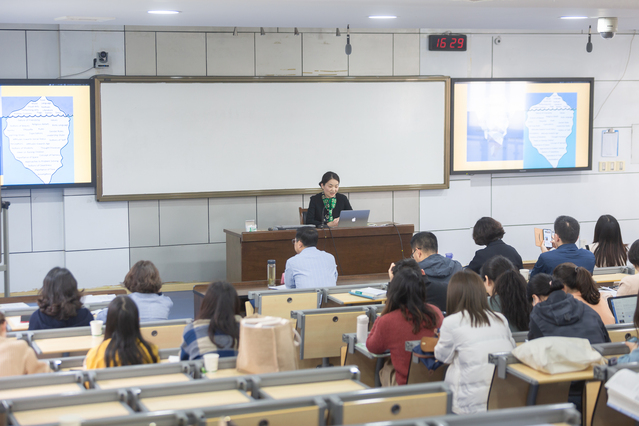 最后,丁建宁教授为参会老师们奉上了一道“文化盛宴”:一场关于英语教学中的文化意识培养的专题讲座。丁教授有着丰富的英美文化背景,对中西方文化均有直观且深刻的了解。她从文化意识的概念、英语教学中的文化与语言、文化意识与全球胜任力、文化意识培养的实施建议等方面娓娓道来,并通过生动的图片、视频和案例展示,让老师们明白展露在我们眼前的只是文化意识中的冰山一角,激发老师们思考文化差异背后的深层次原因,提醒大家在教学中不忘“Cultural Awareness in Mind”。