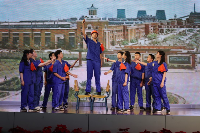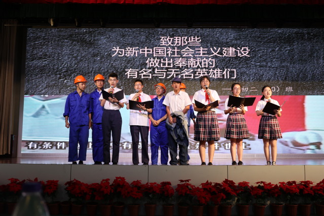 初二11班带来表演《诞生》。长春,是一个英雄的城市;1953年到1957年,是一个英雄的时代。当英雄的城市与英雄的时代碰撞,是第一批解放牌汽车的驶来,是一个个传奇的诞生。