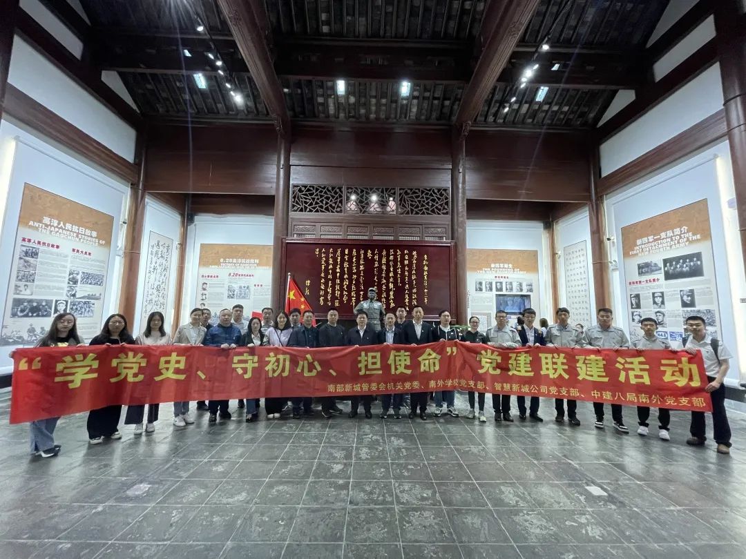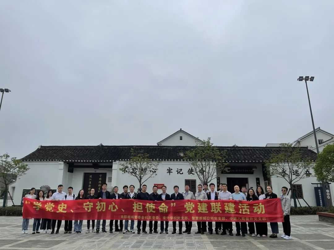 5月12日,南京外国语学校党委行政支部联合南部新城管委会智慧新城公司党支部和中建八局南外项目部党支部开展“学党史、守初心、担使命”学习教育共建主题党日活动。