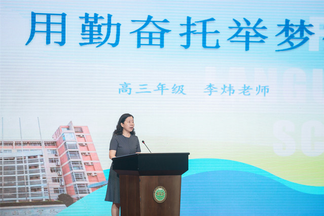 高三年级李炜老师作为教师代表提出了对同学们的期望“用勤奋托举梦想”。