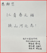 我们的幸福生活来自于先辈们的负重前行和勇于担当。强国有我,祖国需要我们青年接续努力,传承红色革命火种,将爱国之情融入自己的学习和生活中,为中华民族的伟大复兴中国梦做出应有的贡献。