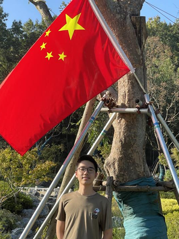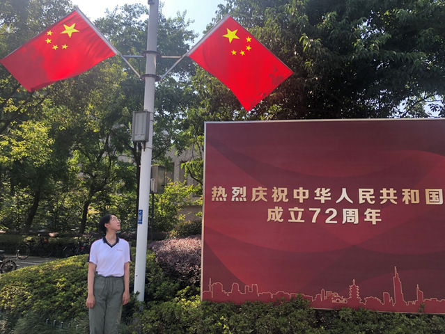 “我和国旗、国徽合个影。”亮丽的中国红上,五颗金黄的星;亮丽的中国红边,一张青春的脸。国旗和国徽是一个国家的象征,蕴含了我们对我们脚下的土地最真挚的情感。今年国庆是中华人民共和国七十二岁华诞,同学们通过与国旗、国徽的合影为祖国庆生。我们为生活在这繁荣盛世而骄傲,自己是中国青年而自豪。而身后的国旗、国徽也激励着我们努力奋斗,砥砺前行,为续写更精彩的未来做准备。