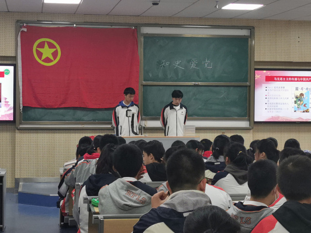 第二节课由校团委委员何弘毅、陈诺严主讲。他们带着同学们重温了中国共产党百年奋斗史:从见证建党百年的奋进之路,到回顾筚路蓝缕的新中国建设征程,从改革春风吹满地的改革开放,再到横跨百年的社会主义发展史,也带大家学习了十九届六中全会精神。通过学习,同学们感到中国共产党就像太阳一般照耀着中华民族的历史、现在和未来。
