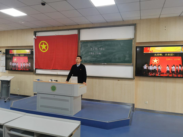 第五节课由团委书记王少林老师主讲。王老师为同学们讲授了关于共青团的基本知识,以及作为一名优秀的共青团员需要承担的奋斗使命。带领同学们学唱团歌《光荣啊,中国共青团》。在激昂的歌声中,同学们坚定了加入共青团的决心。