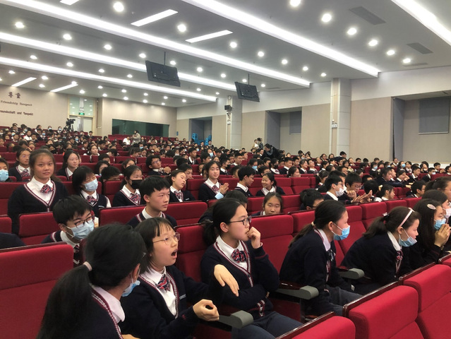 董教授幽默风趣,他将物理知识与名著结合在了一起。在学生们享受物理乐趣的同时,也能了解中国更多的传统文化。整个演讲条理清晰,每个板块之间又有一定的联系,董教授用一个个的小故事引起同学们的兴趣,让学生们理解了物理学中一些基本的概念。爱因斯坦、居里夫人、薛定谔……这些伟大的名字,铸就了一个个科学史上不朽的神话,为社会做出了巨大的贡献。整个讲座中,同学们都深深地沉浸在知识的海洋。初二11班侯佳辰同学说:“这一个小时颠覆了我对物理讲座的认知。本来枯燥无味的理论课被老师讲得生动有趣。”初二6班张哲涵同学说:“从来没有想过理论物理还能与古典文学结合起来讲,董教授学贯中西古今,令人眼前一亮。”