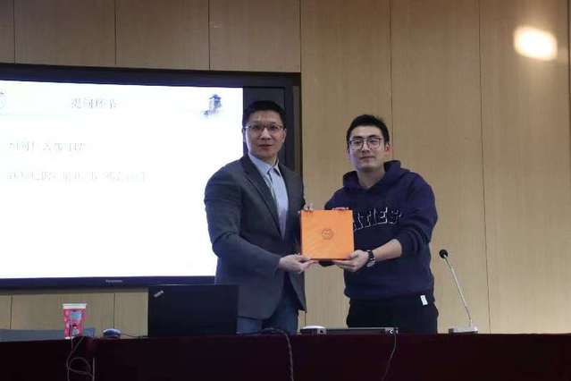 在最后的提问环节中,同学们积极参与,提出不少关于升学和外语学习的问题,例如有同学问“在大学中,如果学习德语专业,会具体学习哪些课程?”“德语初学者和中高级学习者大概可以怎样界定?”等。常老师一一解答了这些问题,不论提问的还是旁听的同学,都表示收获颇丰。讲座结束,德语组委托程彦侨老师向常老师赠送了具有南外特色的文创纪念品。