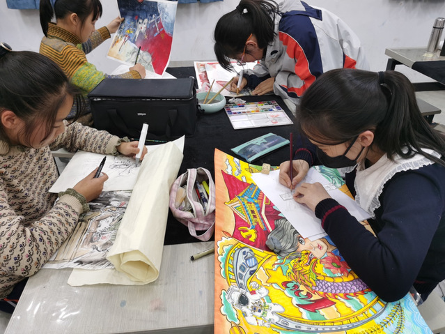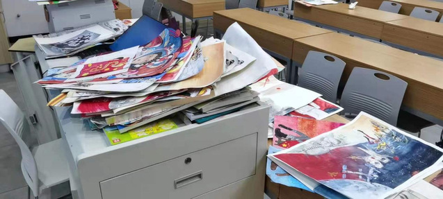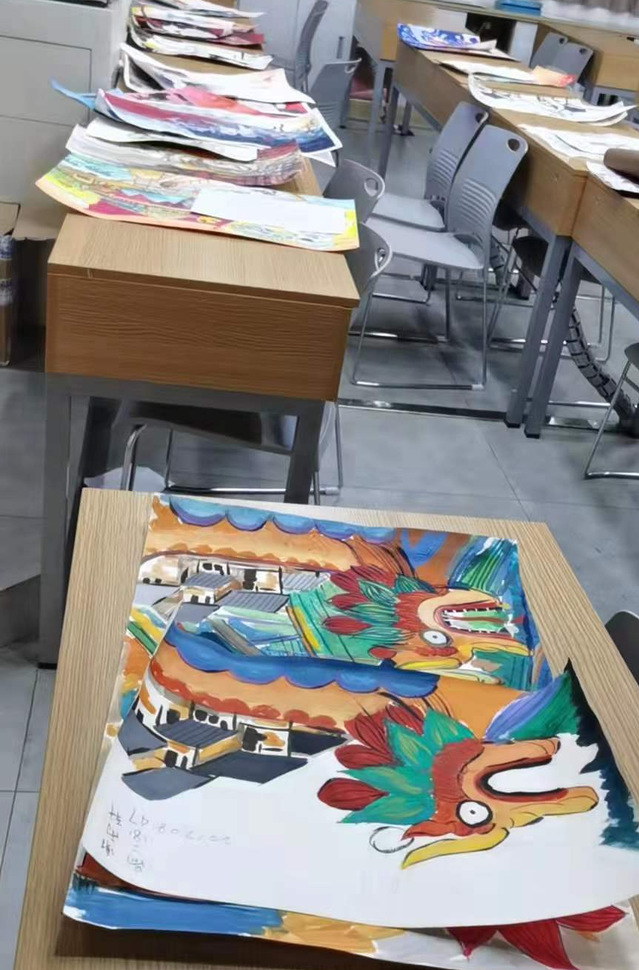 12月15日,初赛作品提交截止。同学们热情高涨,肆意挥舞画笔,绘出眼中所望、心之所想,交来的作品摞满了美术教室的讲台和课桌。