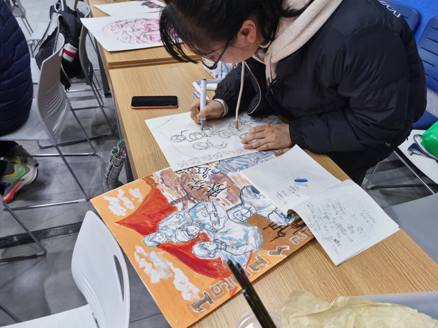 油画、彩铅、水彩、马克笔……各式各样的画作层出不穷。同学们各怀绝技,绘制出一幅幅令人叹为观止的作品,比赛现场犹如神仙打架。