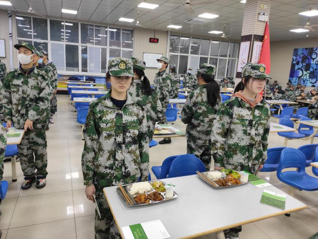 饭前一支歌是必不可少的环节,从同学们唱《团结就是力量》的嘹亮歌声中,我们不难感受到团结的伟大力量。这歌声是如此响亮,似乎都要化为利剑,刺破苍穹了。用餐时间,同学们安静有序地排队打饭,并等待所有成员到齐后才开饭,而这也正是团结精神的体现。
