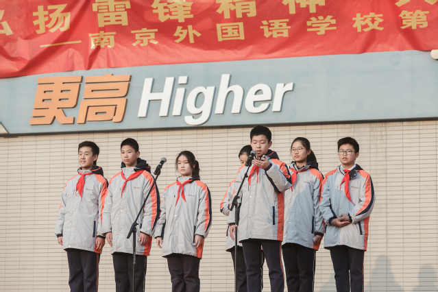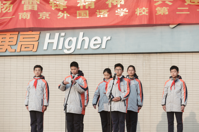谢谢陈诺严同学。“我要把有限的生命,投入到无限的‘为人民服务’之中去”!让我们饱含深情地回望雷锋精神,从中汲取精神动力。在南外校园里,也有一群平凡而不凡的人。他们辛勤备课、扎实教学;他们坚守校园、服务师生;他们富有爱心、乐于助人,都身体力行地践行着雷锋精神。