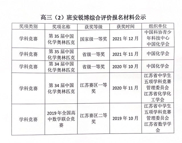 3.经本人申请,现将综合评价获奖情况申报材料公示如下: