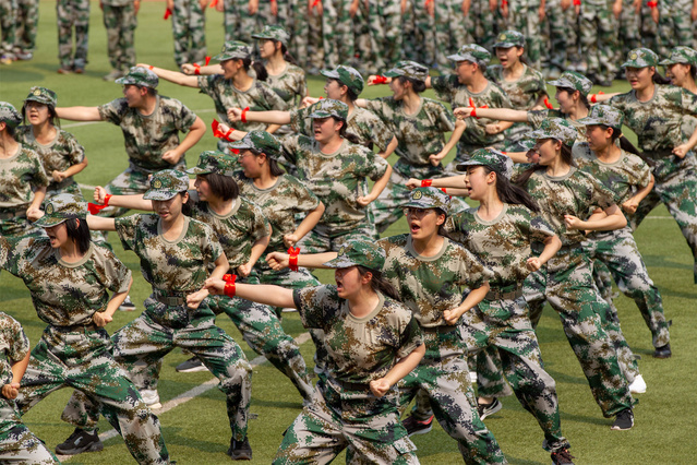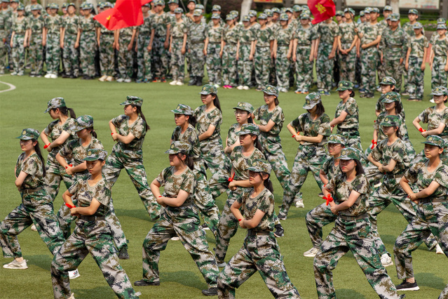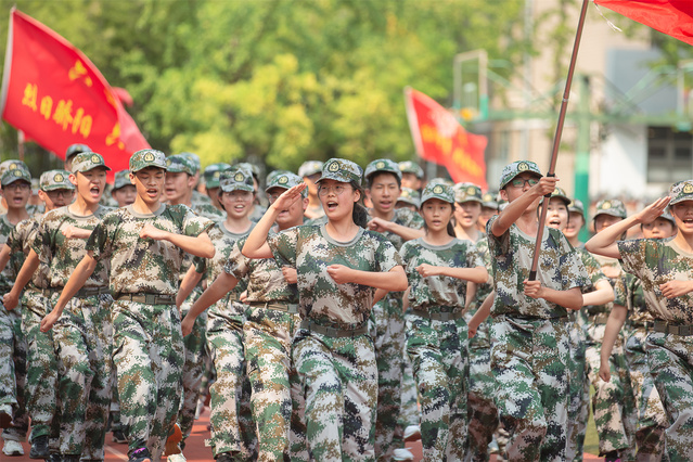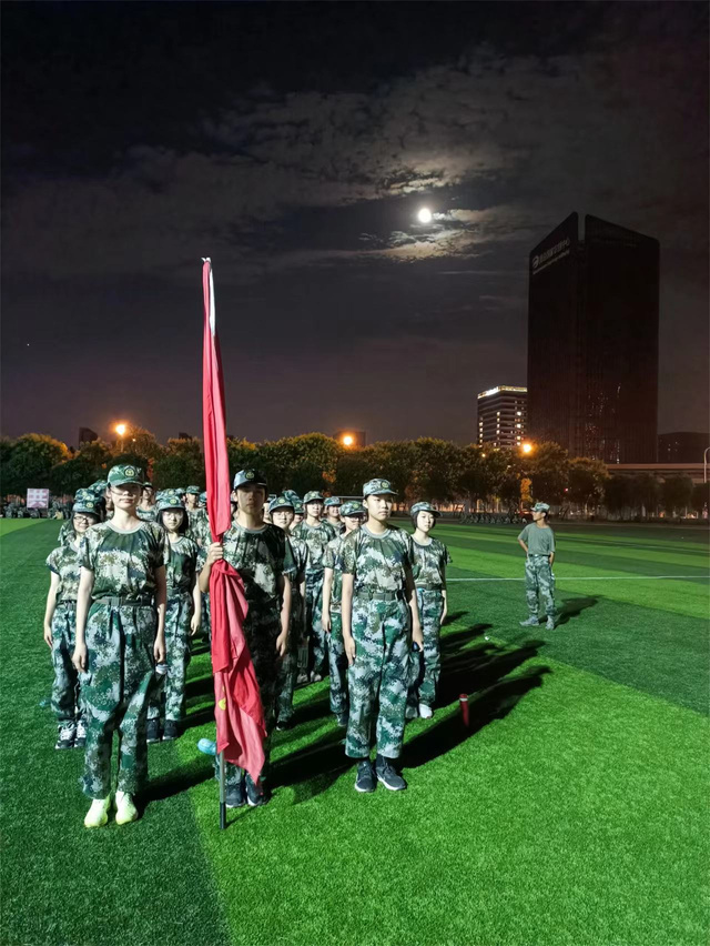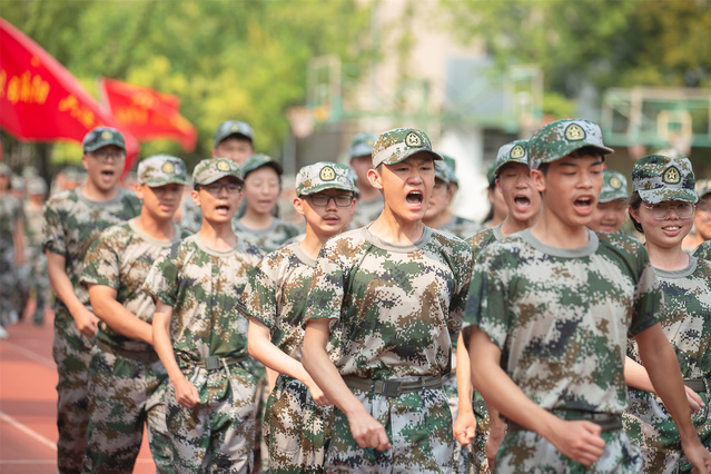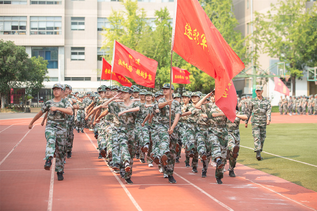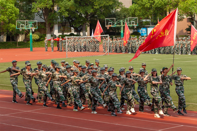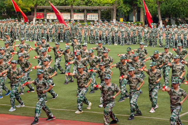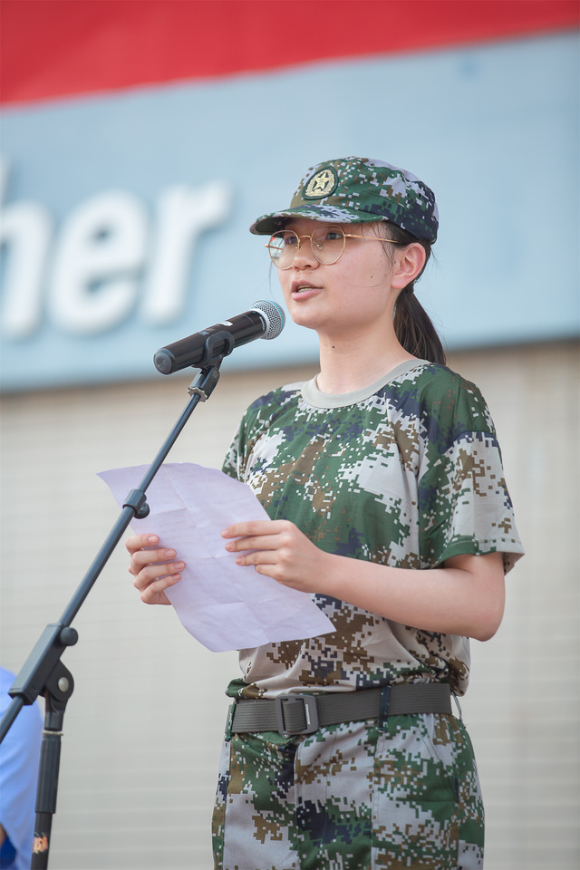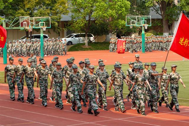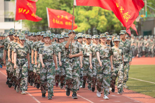 一到训练基地,同学们的身份就迅速从学生转变成了“军人”。“流血流汗不流泪,掉皮掉肉不掉队。”从早训到晚训,从站军姿到唱军歌,从队形演练到内务评比,同学们克服体能的不足和对天气的不适,严格要求自己,不仅在行动上,更在思想和精神上进行刻苦的训练,正所谓千琢璞为玉,百炼铁成钢。