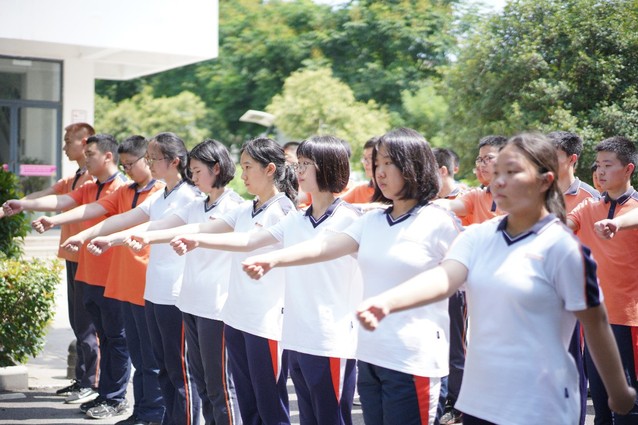 早上,我们寝室统一在五点醒来,迅速整理完内务。随着一声哨响,我们班整队前往大操场练习跨立并进行跑圈。上午练习的是摆臂,我们抬着头,挺着胸,将手臂尽力绷直。