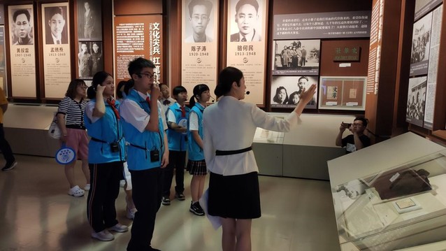 在2023年的炎炎夏日,六位南京外国语学校红色宣讲团的成员:刘子渊、熊雪伶、朱亦可、汪伊萱、陈悦涵、顾添琪利用暑假时间,走进雨花台烈士纪念馆,参加“信仰的力量——雨花英烈生平事迹展”的志愿讲解工作。