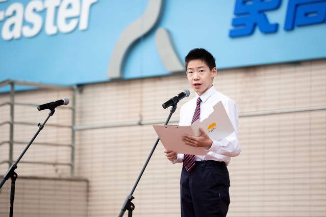感谢王笑然同学的发言。鸣沙山下,跨越千年的莫高窟静静伫立,这离不开一代代坚守大漠的敦煌人。作为新一代的南外人,我们对于爱国又有怎样的理解呢?有请来自高一(2)班的崇轩,谈谈他在做科普志愿活动时的所思所想。