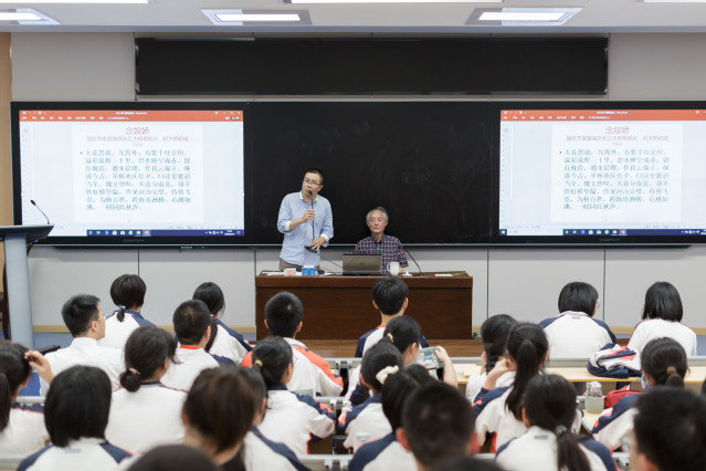 师生互动环节,让会场气氛更加热烈,师生间从更喜欢“婉约派”还是“豪放派”入手,深入分析古今中外的诗歌。