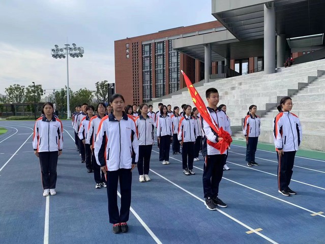 建校60周年恰逢祖国74周年华诞,南京外国语学校北京东路校区门前,五星红旗与南外校旗猎猎飘扬。上午8时30分许,在国旗与校旗下,新一届高一国旗班同学身着校服,精神抖擞,队容严整,整装待发。