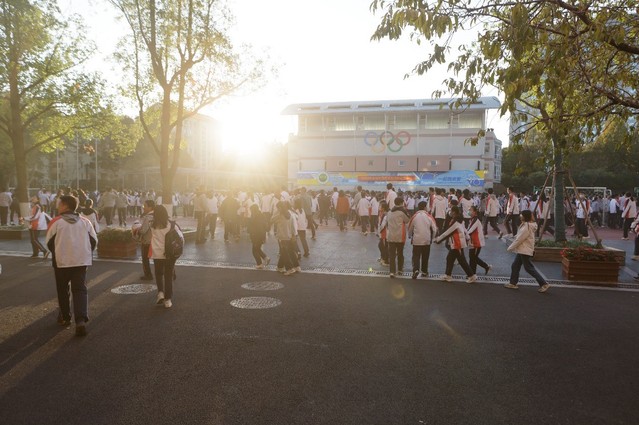 警报拉响后,全校师生迅速按照确定的逃生路线进行疏散,他们在模拟的浓烟环境中捂住口鼻弯腰前进,快速有序。所有人疏散至操场后,各班立即清点人数并上报,全员安全。